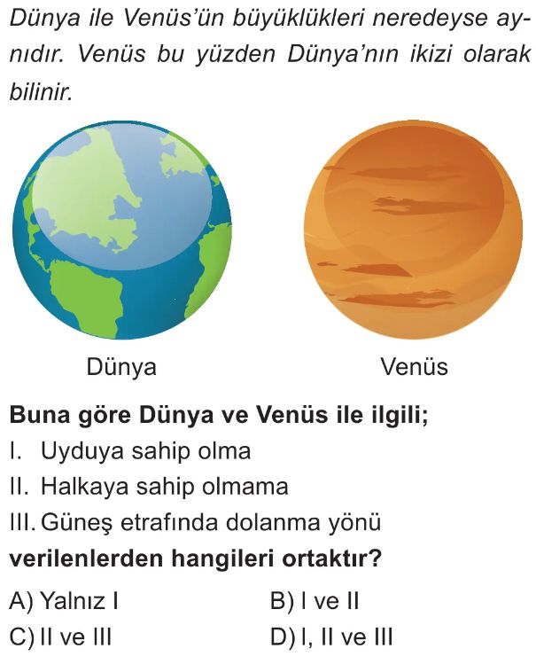 6. Sınıf Güneş Sistemi ve Tutulmalar Ünite Değerlendirme Test 5
