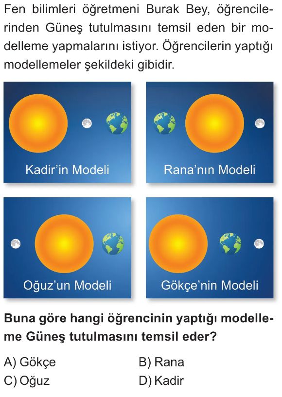 6. Sınıf Güneş Sistemi ve Tutulmalar Ünite Değerlendirme Test 5
