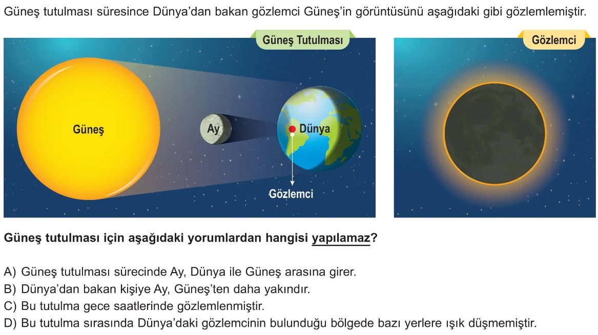 6. Sınıf Güneş Sistemi ve Tutulmalar Ünite Değerlendirme Test 6
