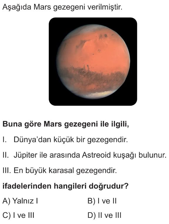 6. Sınıf Güneş Sistemi ve Tutulmalar Ünite Değerlendirme Test 6