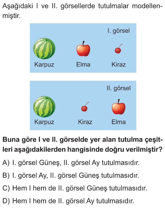 6. Sınıf Güneş Sistemi ve Tutulmalar Ünite Değerlendirme Test 7