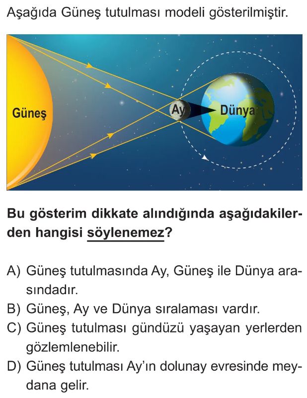 6. Sınıf Güneş Sistemi ve Tutulmalar Ünite Değerlendirme Test 7