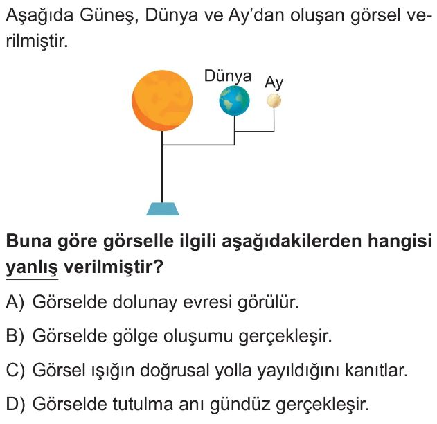 6. Sınıf Güneş Sistemi ve Tutulmalar Ünite Değerlendirme Test 7