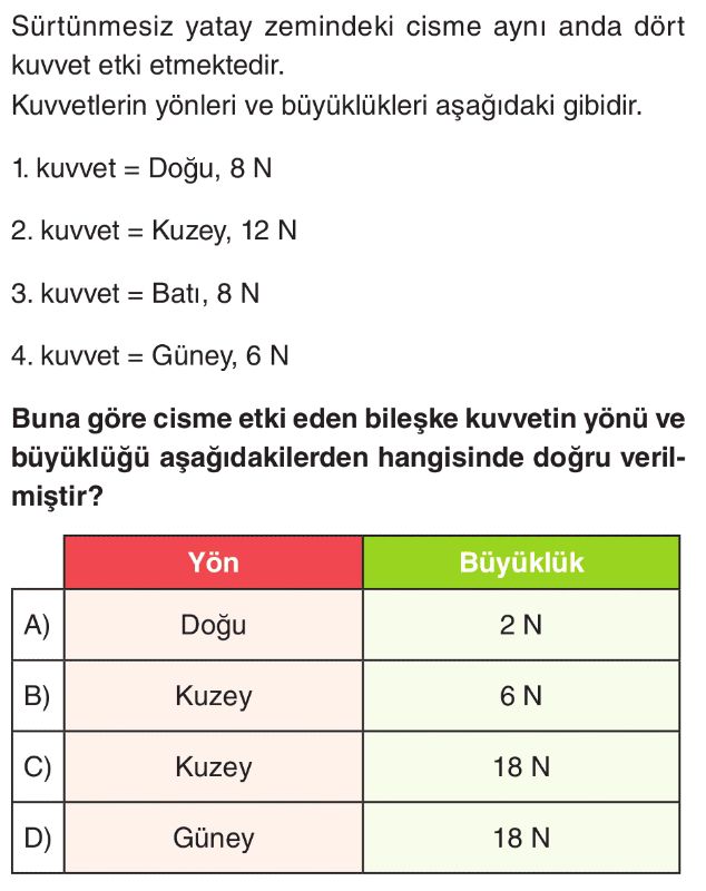6. Sınıf Bileşke Kuvvet Test 1
