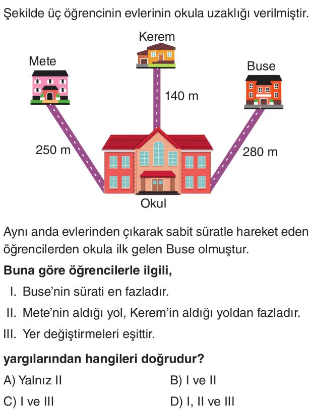 6. Sınıf Sabit Süratli ve Sabit Hızlı Hareket Test 1