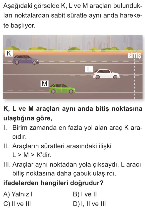 6. Sınıf Sabit Süratli ve Sabit Hızlı Hareket Test 1