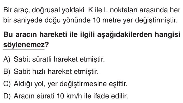 6. Sınıf Sabit Süratli ve Sabit Hızlı Hareket Test 2