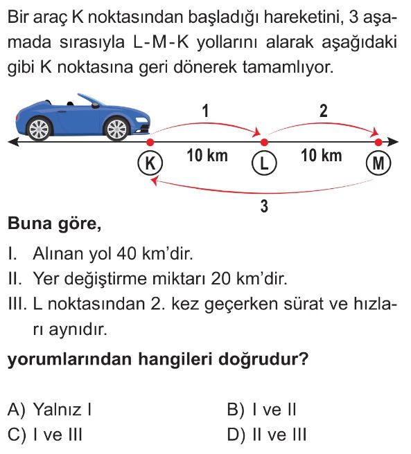 6. Sınıf Sabit Süratli ve Sabit Hızlı Hareket Test 3