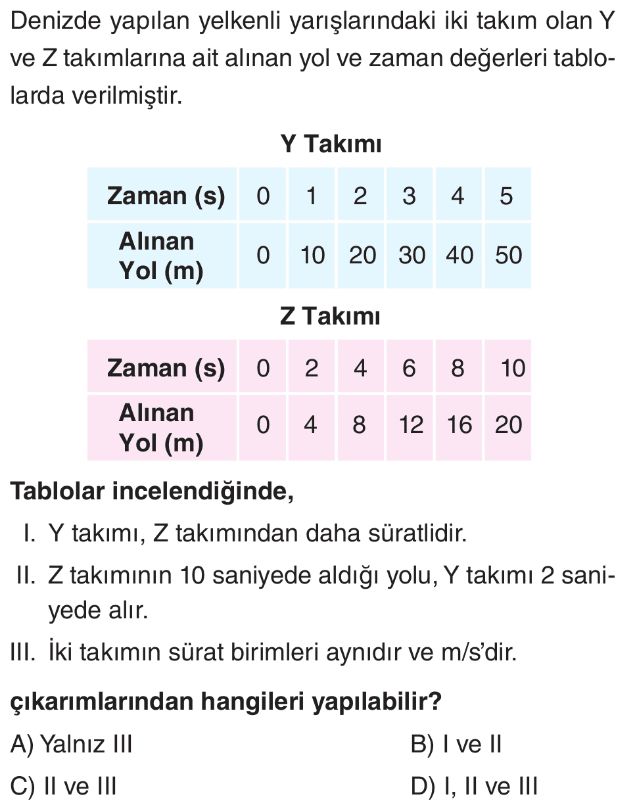 6. Sınıf Sabit Süratli ve Sabit Hızlı Hareket Test 3