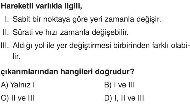6. Sınıf Sabit Süratli ve Sabit Hızlı Hareket Test 4