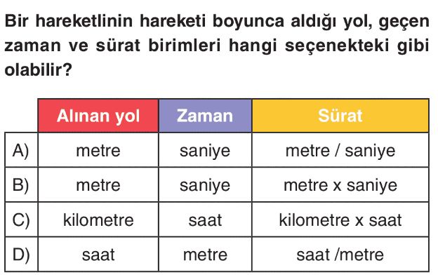 6. Sınıf Sabit Süratli ve Sabit Hızlı Hareket Test 5