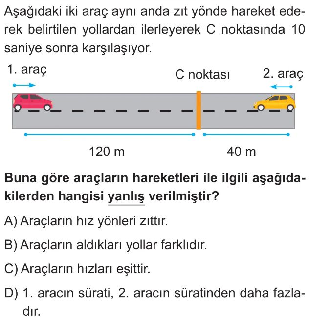 6. Sınıf Sabit Süratli ve Sabit Hızlı Hareket Test 5