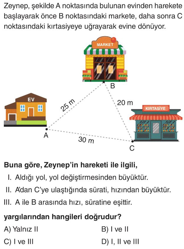 6. Sınıf Sabit Süratli ve Sabit Hızlı Hareket Test 5