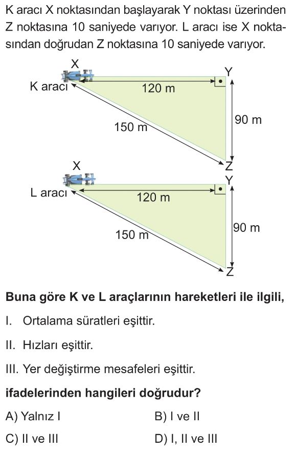 6. Sınıf Sabit Süratli ve Sabit Hızlı Hareket Test 5