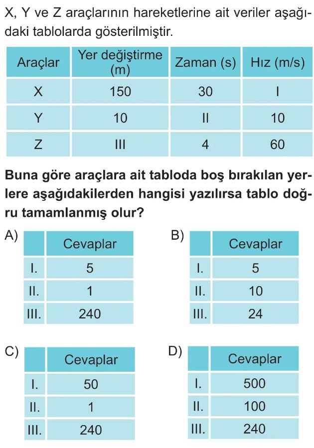 6. Sınıf Sabit Süratli ve Sabit Hızlı Hareket Test 6