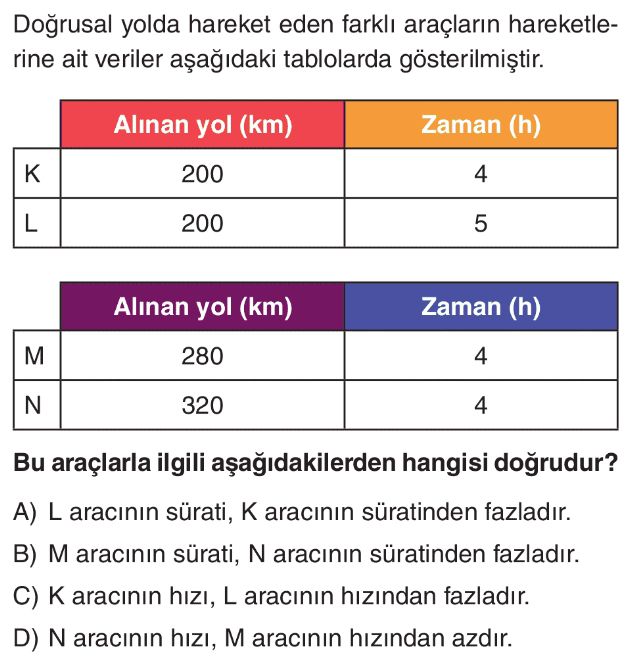 6. Sınıf Sabit Süratli ve Sabit Hızlı Hareket Test 6