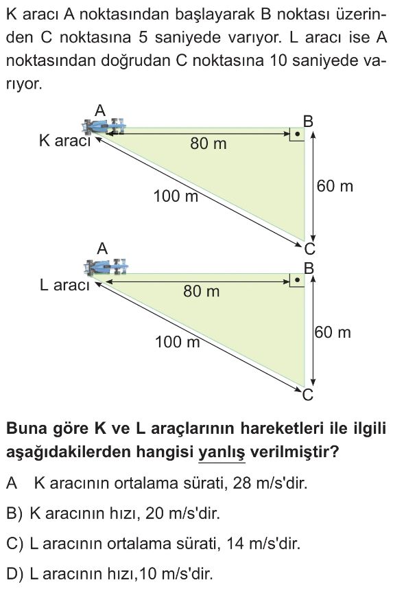 6. Sınıf Sabit Süratli ve Sabit Hızlı Hareket Test 7