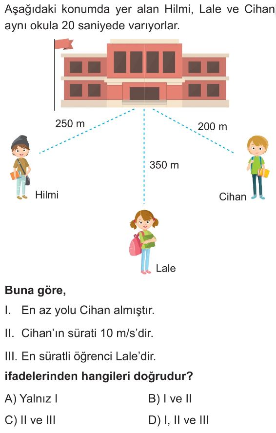 6. Sınıf Sabit Süratli ve Sabit Hızlı Hareket Test 7