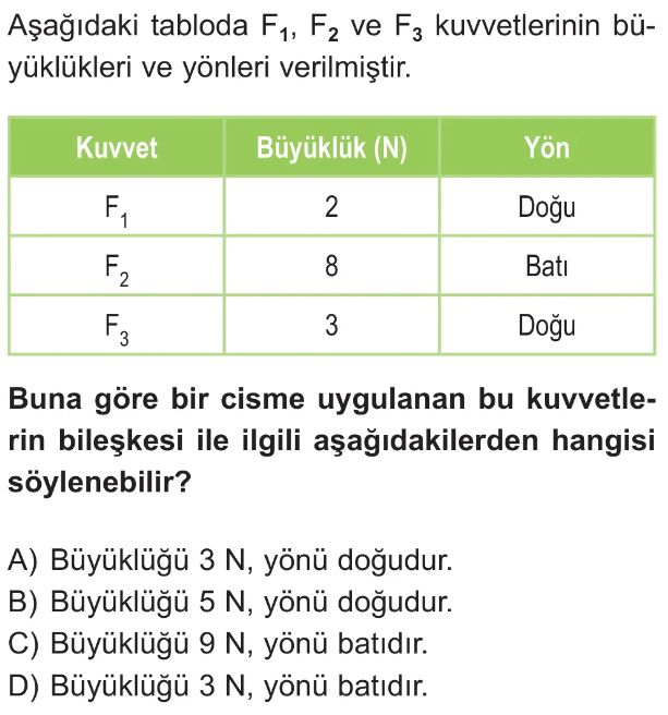 6. Sınıf Kuvvetin Etkisinde Hareket Ünite Değerlendirme Test 1