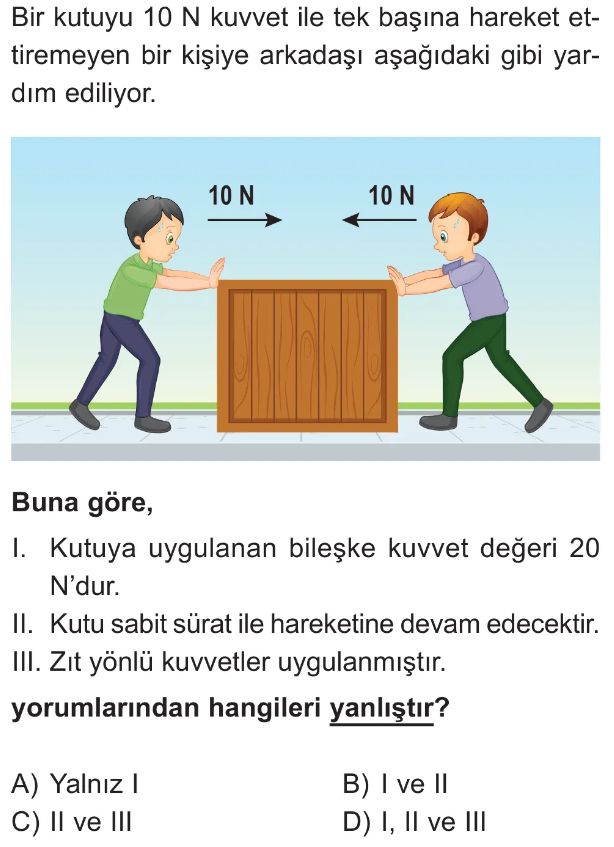 6. Sınıf Kuvvetin Etkisinde Hareket Ünite Değerlendirme Test 1