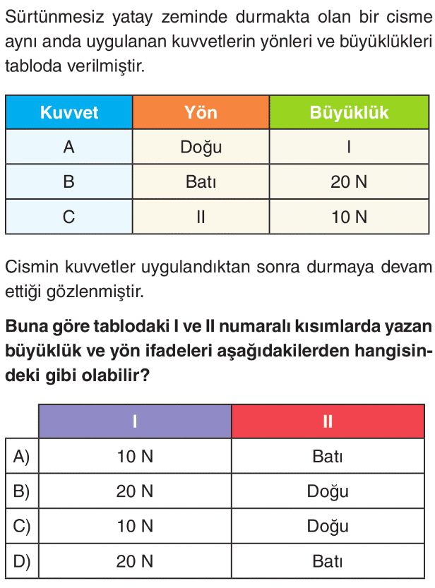 6. Sınıf Kuvvetin Etkisinde Hareket Ünite Değerlendirme Test 2