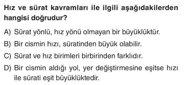 6. Sınıf Kuvvetin Etkisinde Hareket Ünite Değerlendirme Test 3