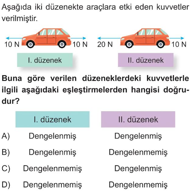 6. Sınıf Kuvvetin Etkisinde Hareket Ünite Değerlendirme Test 4