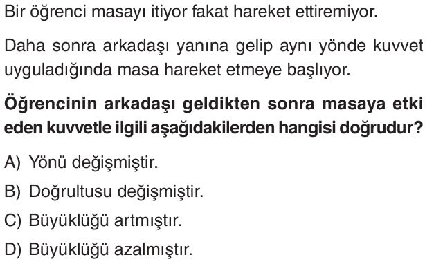6. Sınıf Kuvvetin Etkisinde Hareket Ünite Değerlendirme Test 4