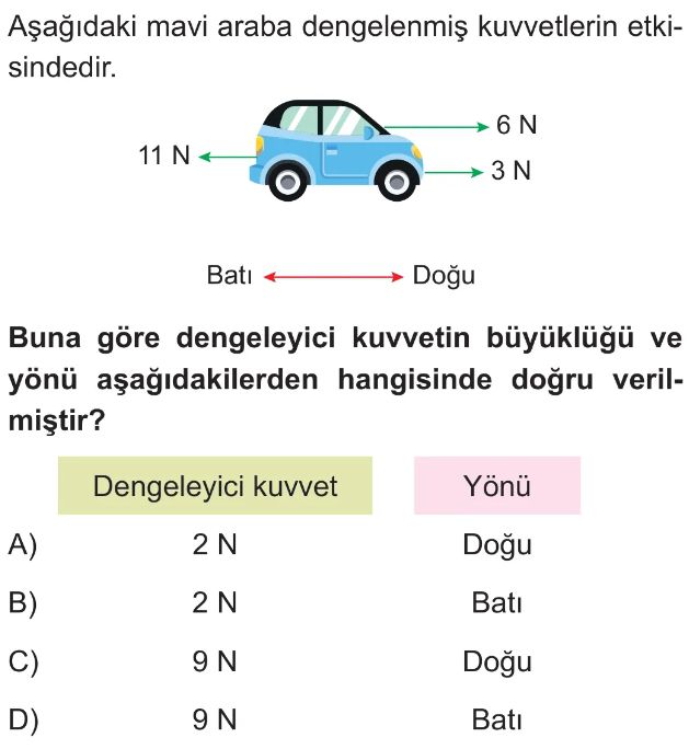 6. Sınıf Kuvvetin Etkisinde Hareket Ünite Değerlendirme Test 5