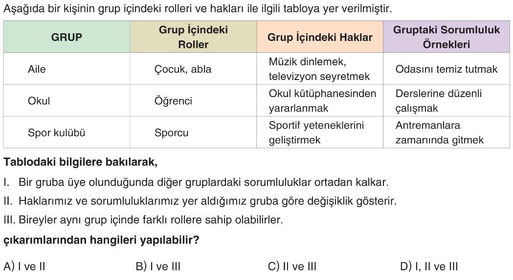 6. Sınıf Zaman İçinde Değişen Gruplar ve Roller Test 4