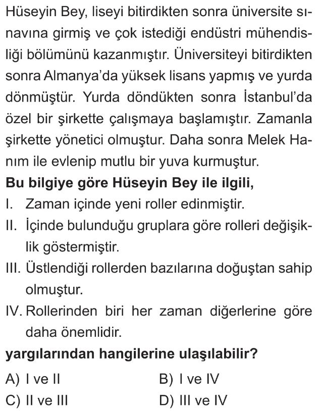 6. Sınıf Zaman İçinde Değişen Gruplar ve Roller Test 4