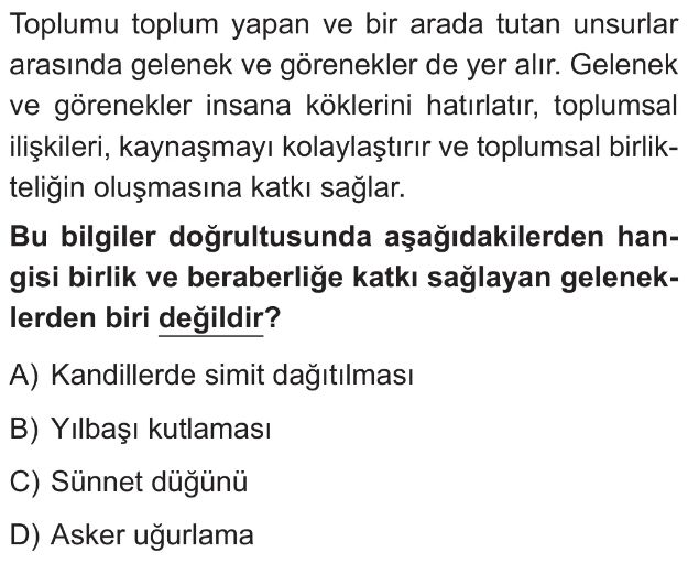 6. Sınıf Kültürel Bağlarımızın ve Milli Değerlerimizin Toplumsal Birlikteliğe Etkisi Test 1