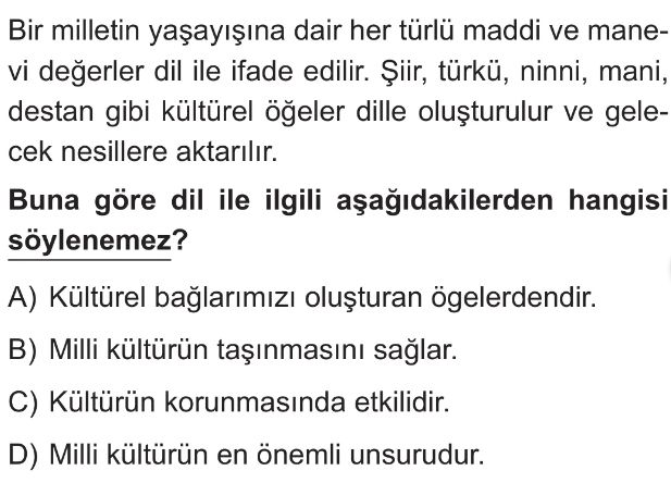 6. Sınıf Kültürel Bağlarımızın ve Milli Değerlerimizin Toplumsal Birlikteliğe Etkisi Test 1