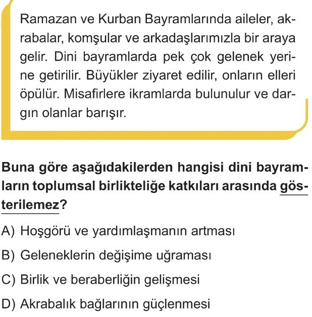 6. Sınıf Kültürel Bağlarımızın ve Milli Değerlerimizin Toplumsal Birlikteliğe Etkisi Test 1