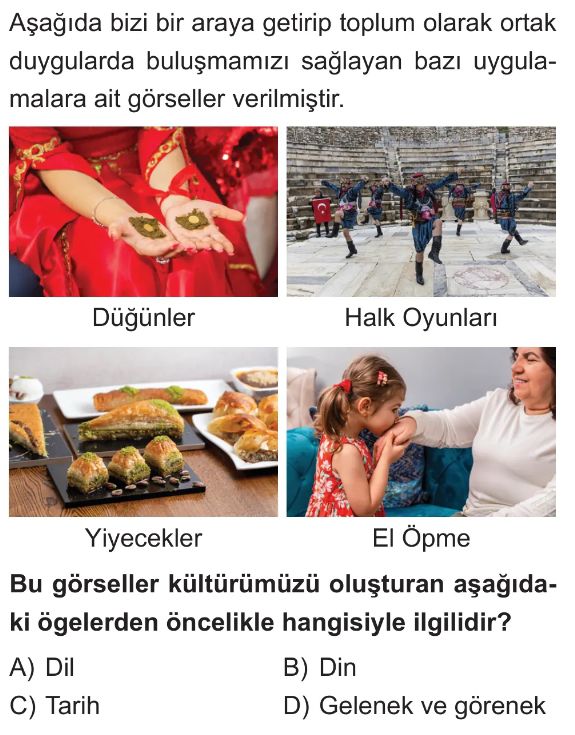 6. Sınıf Kültürel Bağlarımızın ve Milli Değerlerimizin Toplumsal Birlikteliğe Etkisi Test 1