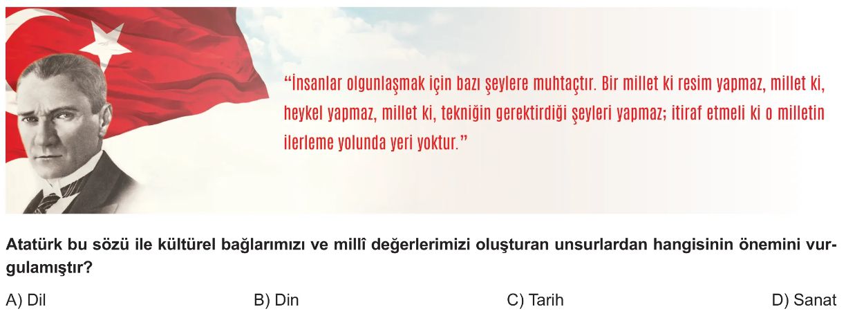 6. Sınıf Kültürel Bağlarımızın ve Milli Değerlerimizin Toplumsal Birlikteliğe Etkisi Test 2