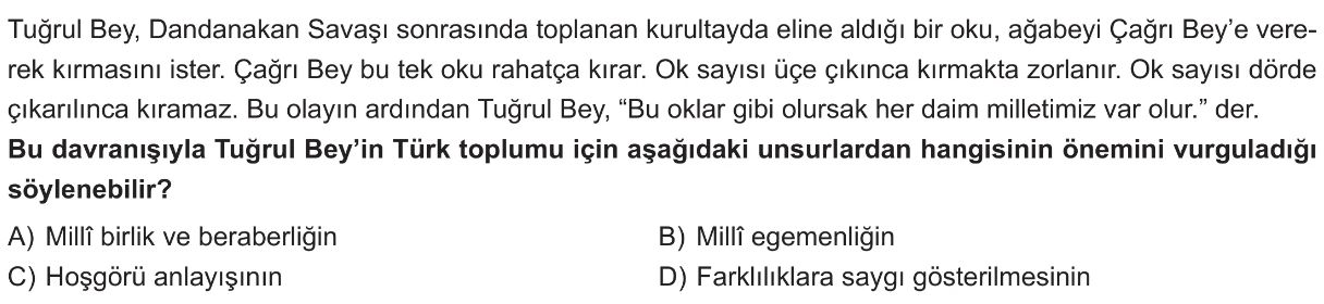 6. Sınıf Kültürel Bağlarımızın ve Milli Değerlerimizin Toplumsal Birlikteliğe Etkisi Test 3