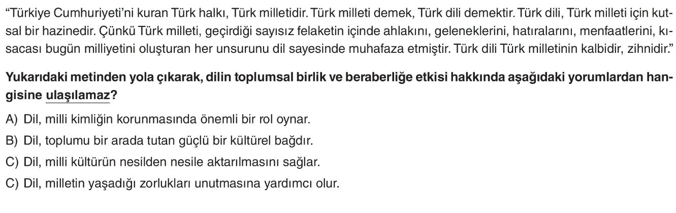 6. Sınıf Kültürel Bağlarımızın ve Milli Değerlerimizin Toplumsal Birlikteliğe Etkisi Test 3