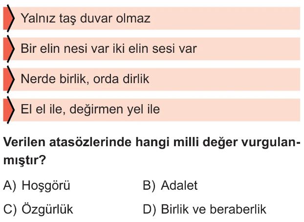6. Sınıf Kültürel Bağlarımızın ve Milli Değerlerimizin Toplumsal Birlikteliğe Etkisi Test 4