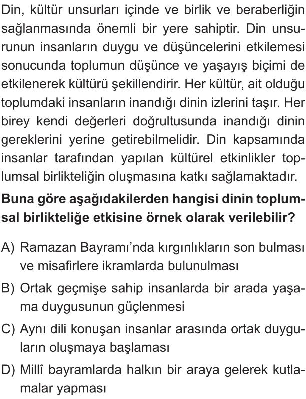 6. Sınıf Kültürel Bağlarımızın ve Milli Değerlerimizin Toplumsal Birlikteliğe Etkisi Test 5