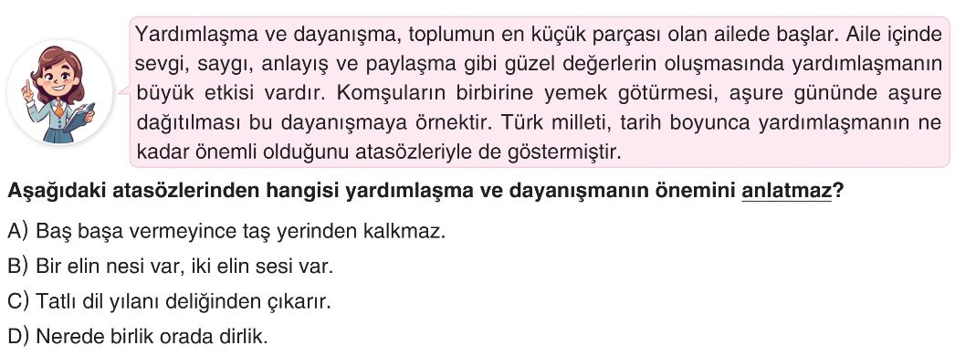 6. Sınıf Kültürel Bağlarımızın ve Milli Değerlerimizin Toplumsal Birlikteliğe Etkisi Test 5