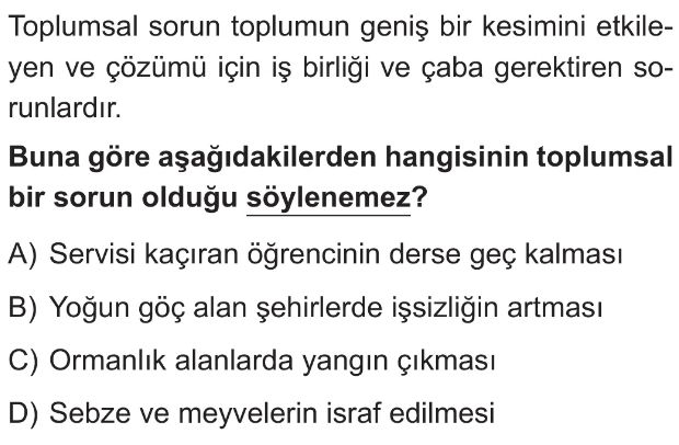 6. Sınıf Toplumsal Sorunlar ve Çözüm Önerileri Test 2