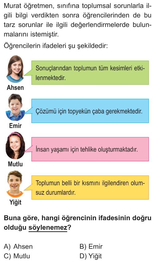6. Sınıf Toplumsal Sorunlar ve Çözüm Önerileri Test 2