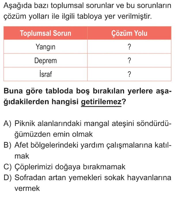 6. Sınıf Toplumsal Sorunlar ve Çözüm Önerileri Test 3