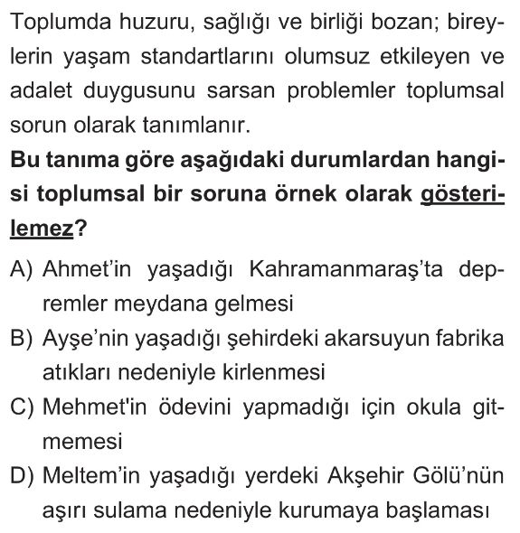 6. Sınıf Toplumsal Sorunlar ve Çözüm Önerileri Test 4