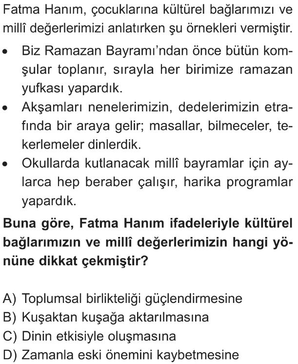 6. Sınıf Birlikte Yaşamak Öğrenme Alanı Değerlendirme Test 2