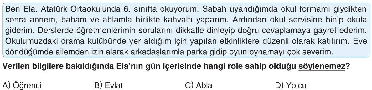 6. Sınıf Birlikte Yaşamak Öğrenme Alanı Değerlendirme Test 3