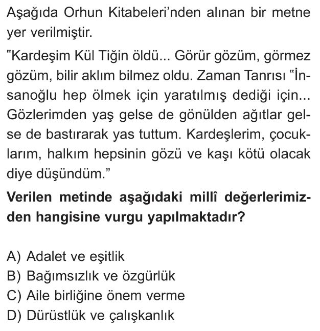 6. Sınıf Birlikte Yaşamak Öğrenme Alanı Değerlendirme Test 4