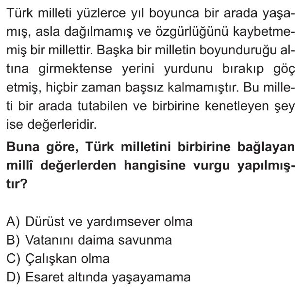 6. Sınıf Birlikte Yaşamak Öğrenme Alanı Değerlendirme Test 4