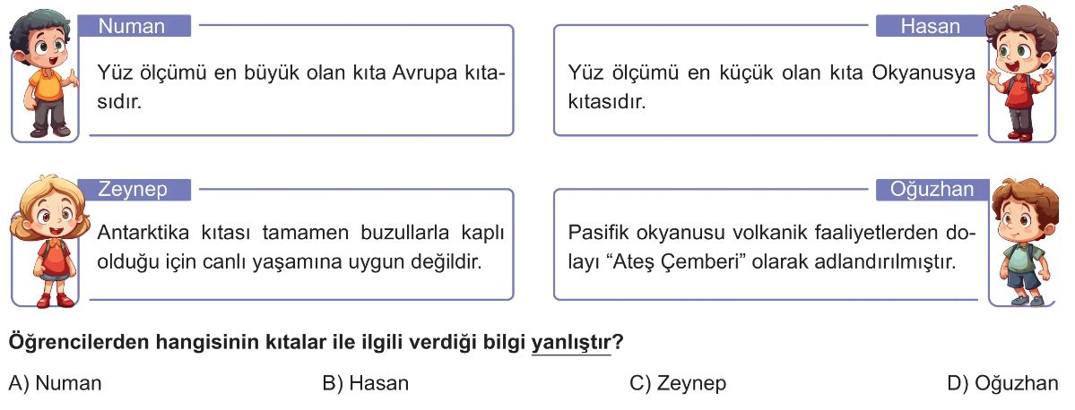 6. Sınıf Ülkemizin, Kıtaların ve Okyanusların Konum Özellikleri Test 2